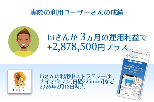 利用ユーザーhiさん3ヶ月利益+2,878,500円