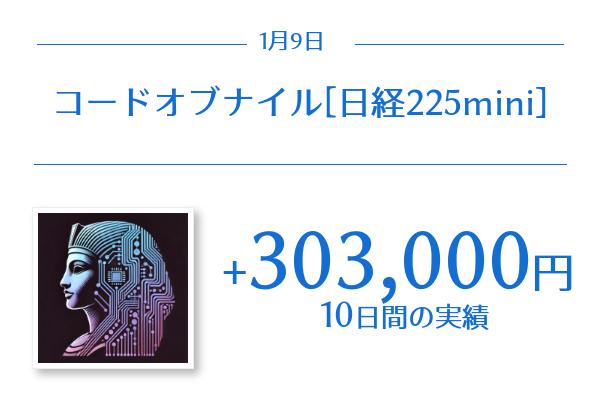 ※利益:実際にユーザーがロボトレーダーから受け取った売買シグナルを元に計算した利益額になります。利益、収益等金額については取引手数料・税金等は考慮しておりません。日々ストラテジーから配信される売買シグナルでは、新規エントリー(買い/売り)、銘柄、数量、そして決済についても明確に記載があります。また注文方法も寄付成行の為、売買シグナルを受け取ったユーザー全員が同じ取引、同じ約定価格を実現できます。