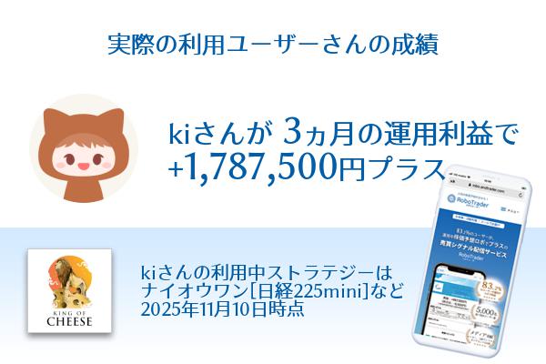 kiさん(利用ユーザー)の3ヶ月利益+1,787,500円