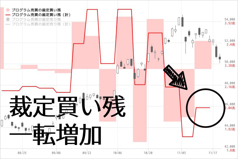 「先物売り・現物買い」の裁定買いポジションが解消する傾向だったが、今回、裁定取引の流れは変わり、相場反転の可能性が考えられる。