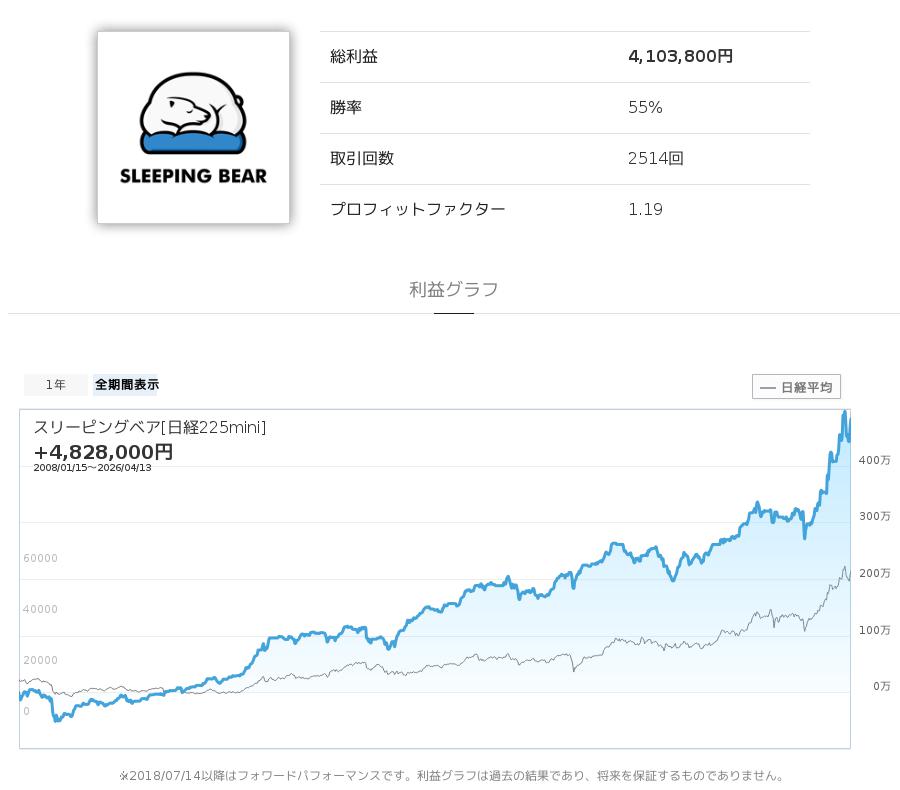 スリーピングベア[日経225mini]は、日経225mini(日経平均先物)を対象としたストラテジーです。