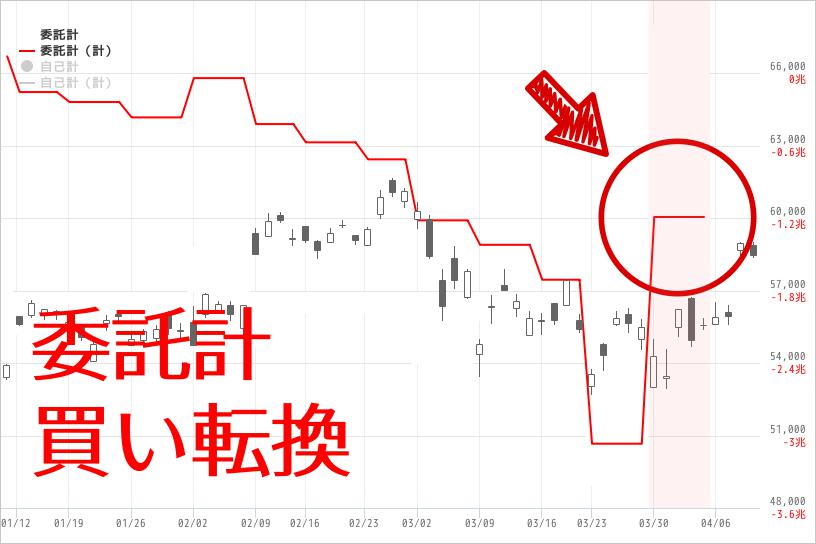 4月第2週、ついに投資信託部門が売りに転じる。4週ぶりの売り越し。
