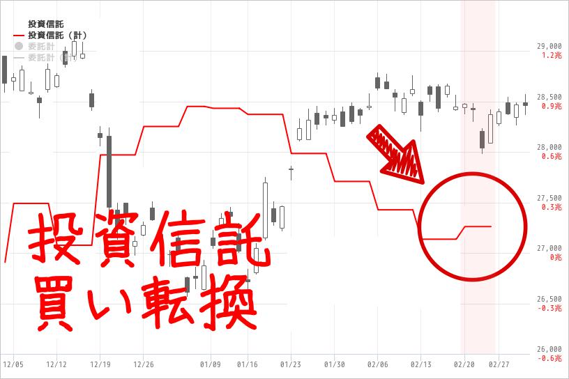 投資信託の解約などの影響もあると思いますが、個人投資家の逆張りの動きだけでなく、それ以上に大きなインパクトを持つ第二の個人投資家ともいえる投資信託の動きにも注目しておくと、相場の全体的なトレンドを把握することができるのではないでしょうか。