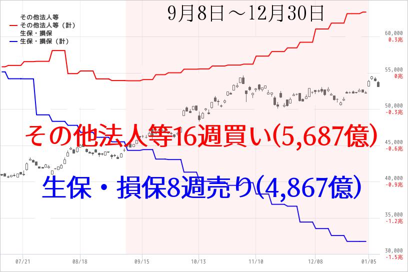 16週買い越しのその他法人等 VS 8週売り越しの生保・損保[2025年12月29日~12月30日(12月第5週)]