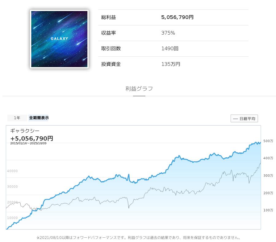 今回の売買シグナルを配信した株価予想ロボ(ストラテジー)の「ギャラクシー」は、