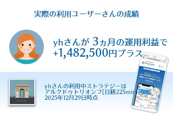 yhさん(利用ユーザー)の3ヶ月利益+1,482,500円