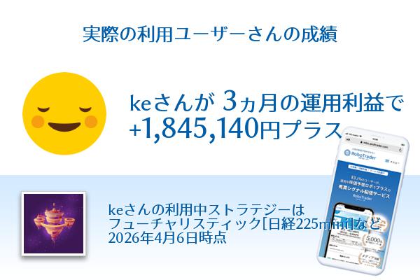 利用ユーザーkeさん3ヶ月利益+1,845,140円