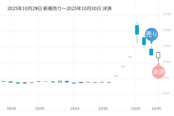 10月29日の朝寄付で新規売りエントリーし、10月30日の朝寄付で決済となり、利回りは+11.8%でした。