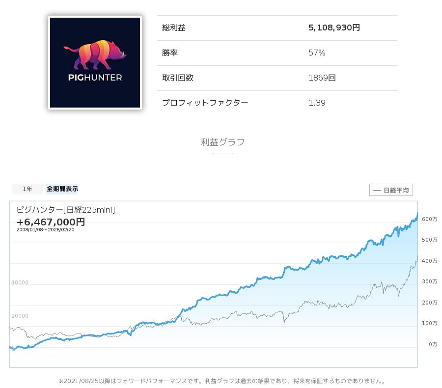<ピグハンター[日経225mini]のパフォーマンス(下記グラフ)>