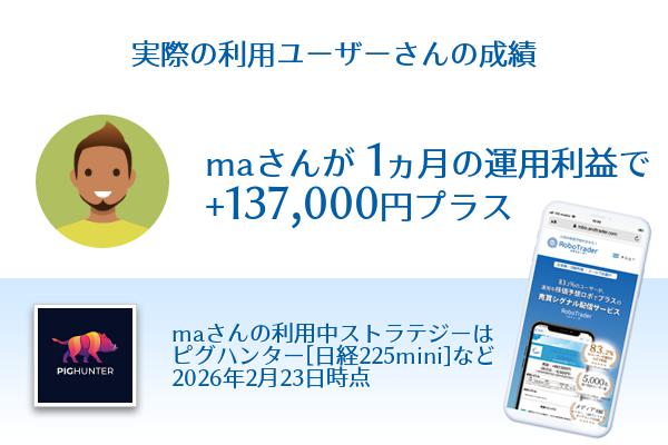 利用ユーザーmaさん1ヶ月利益+137,000円