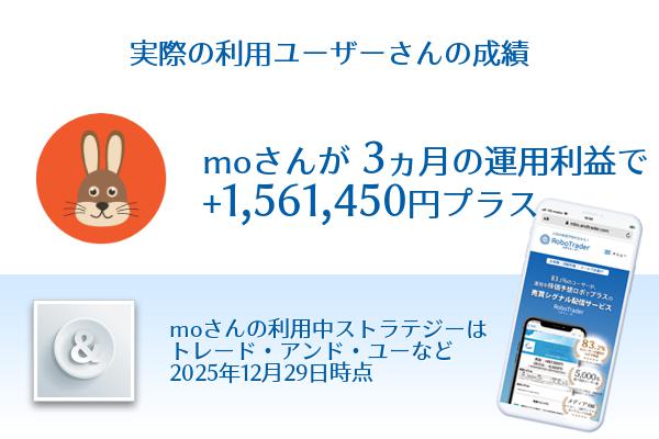 利用ユーザーmoさん3ヶ月利益+1,561,450円