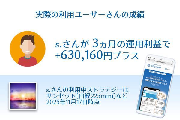 利用ユーザーs.さん3ヶ月利益+630,160円