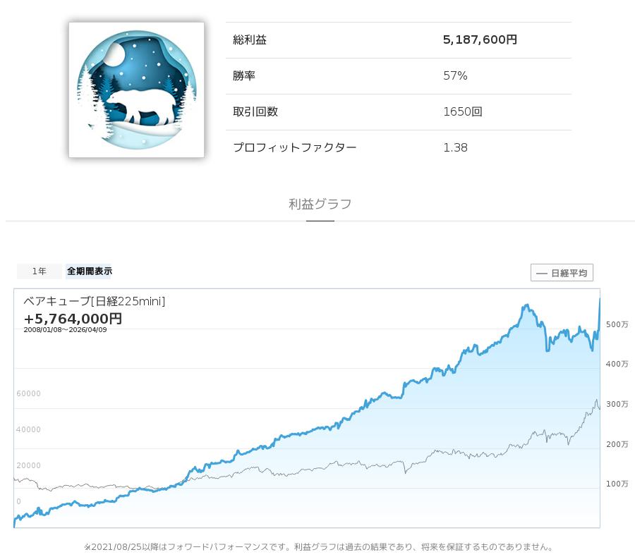 330日間の実績!+1,034,000円|ベアキューブ[日経225mini]