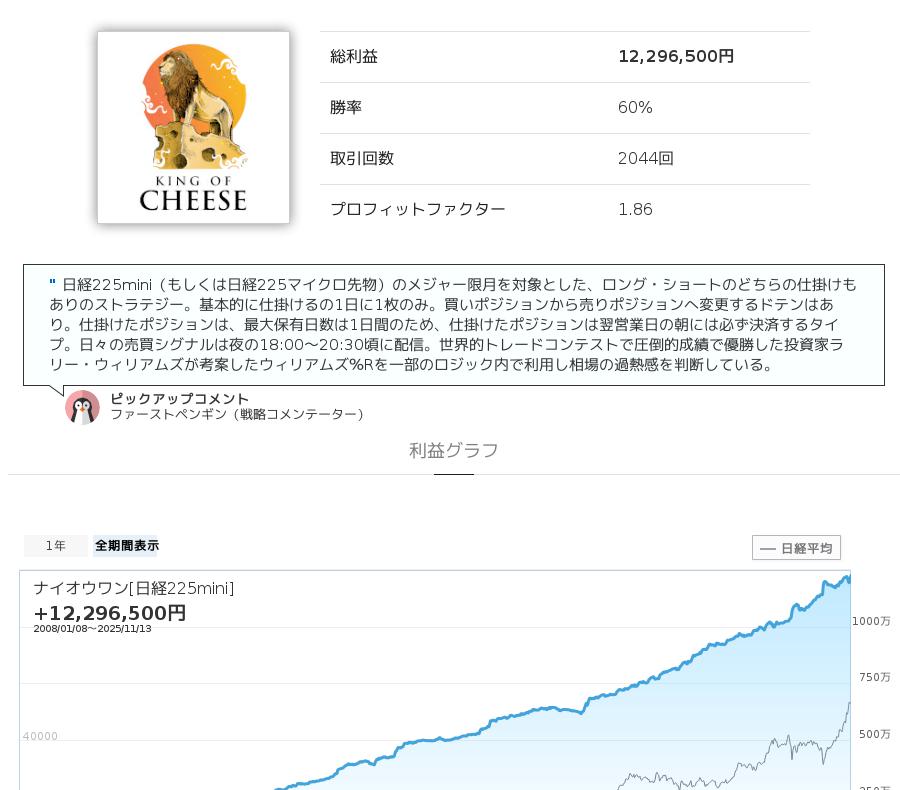 ロボトレーダーのストラテジー「ナイオウワン[日経225mini]」+340,000円!10日間の実績※(11月13日時点)