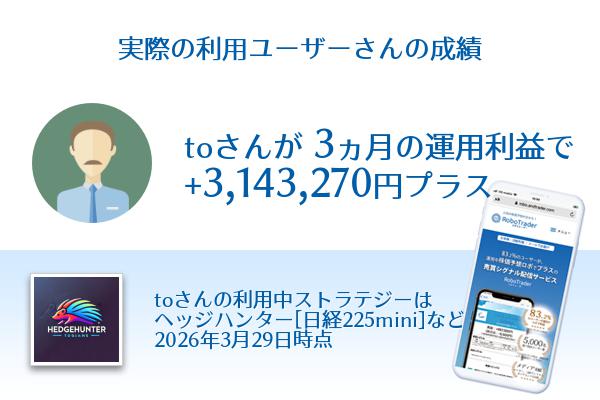 利用ユーザーtoさん3ヶ月利益+3,143,270円