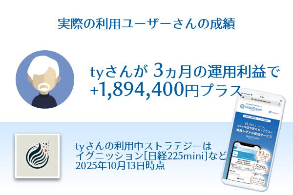 利益1,894,400円!利用ユーザーtyさん3ヶ月間