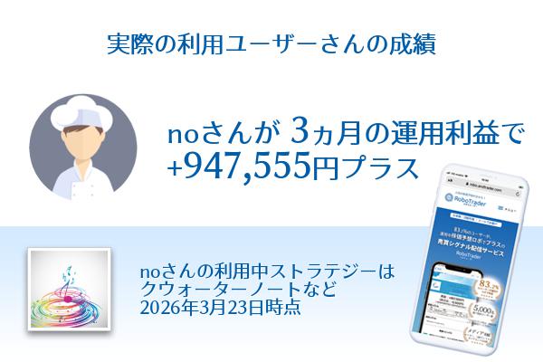 利益947,555円!利用ユーザーnoさん3ヶ月間