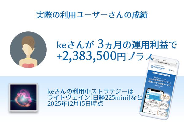 利用ユーザーkeさん3ヶ月利益+2,383,500円