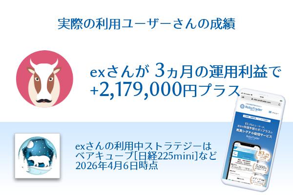 利用ユーザーexさん3ヶ月利益+2,179,000円