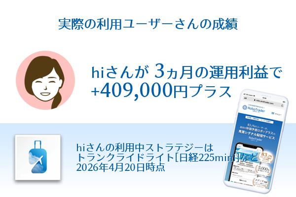 利用ユーザーhiさん3ヶ月利益+409,000円