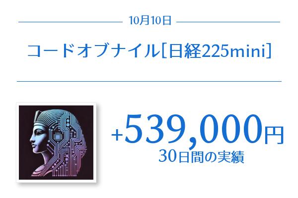 コードオブナイル[日経225mini](ストラテジー)の30日間の実績は+539,000円でした。