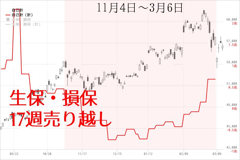 海外投資家が売り越しする中、3月第1週に、買い越しに回り海外投資家の売り越し分を吸収した部門は、「個人投資家部門」で約9,523億円の買い越しとなった。
