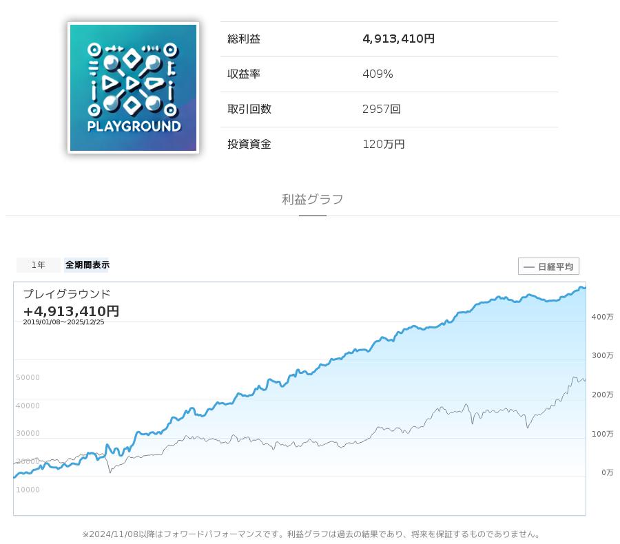 今回の売買シグナルを配信した株価予想ロボ(ストラテジー)の「プレイグラウンド」は、