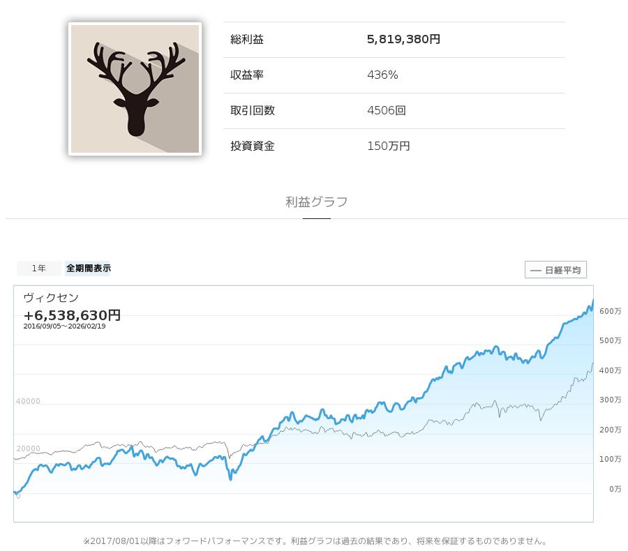 今回の売買シグナルを配信した株価予想ロボ(ストラテジー)の「ヴィクセン」は、