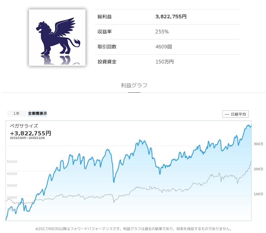 <ペガサライズのパフォーマンス(下記グラフ)>
