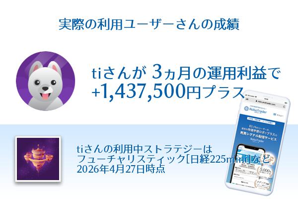利用ユーザーtiさん3ヶ月利益+1,437,500円