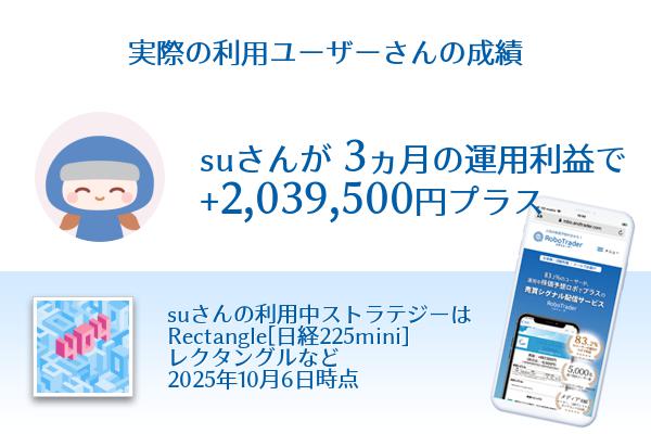 利益2,039,500円!利用ユーザーsuさん3ヶ月間