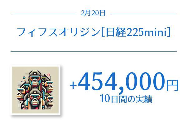 ロボトレーダーのストラテジー「フィフスオリジン[日経225mini]」+454,000円!10日間の実績※(2月19日時点)