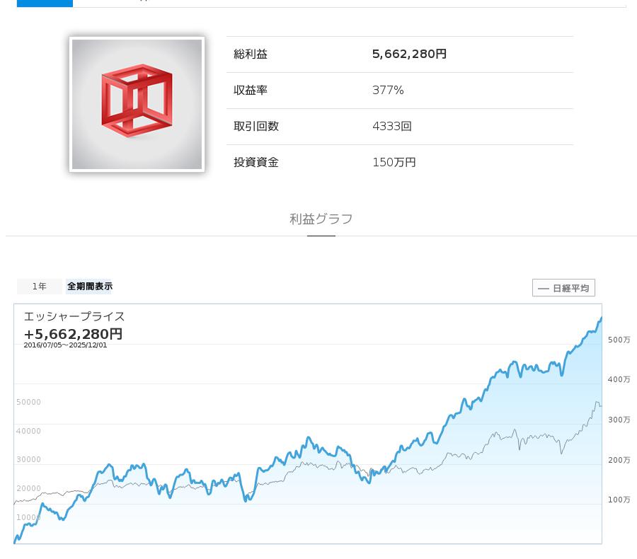 エッシャープライスは、日本株式銘柄を対象としたストラテジーで、toさんをはじめ他のユーザーさんも多く利用している人気のストラテジーです。