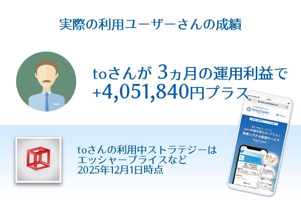 toさん(利用ユーザー)の3ヶ月利益+4,051,840円