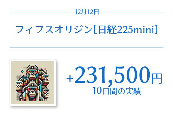 フィフスオリジン[日経225mini](ストラテジー)の10日間の実績は+231,500円でした。