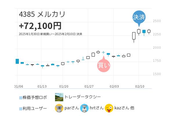 この[4385]メルカリの売買シグナルは、 tyさんなどが利用しているストラテジー「ギアトレード」から配信されました。
