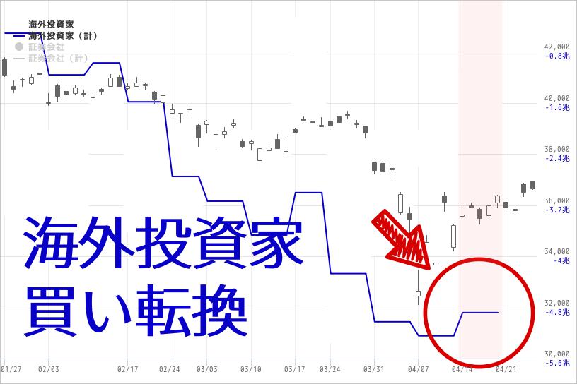 4月第4週、ついに法人部門が売りに転じる。5週ぶりの売り越し。