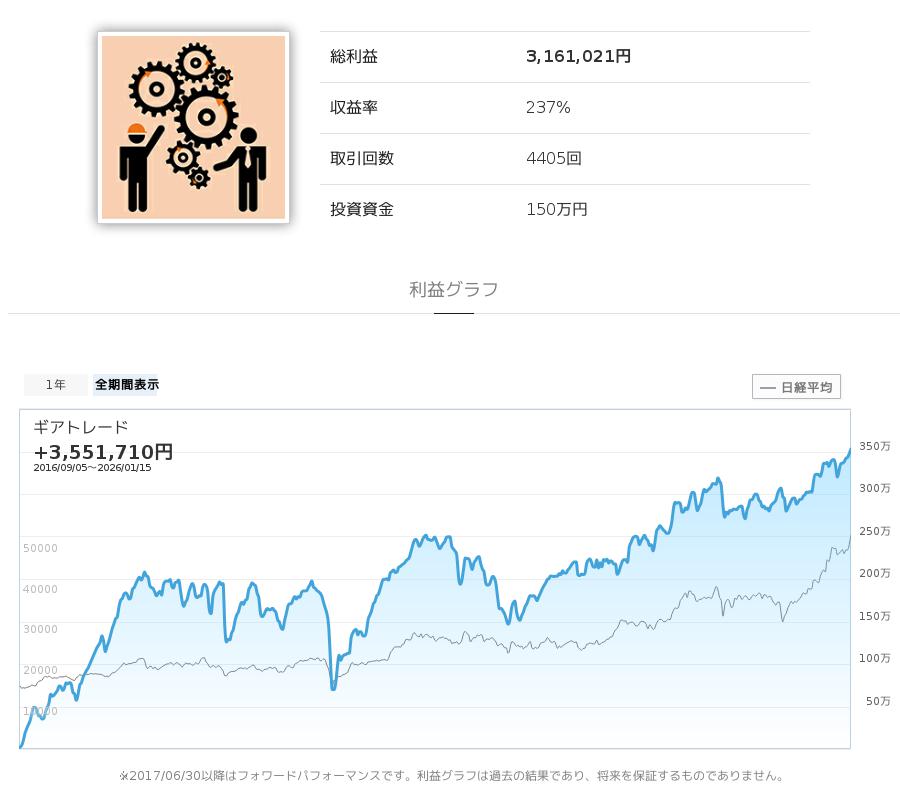 <ギアトレードのパフォーマンス(下記グラフ)>