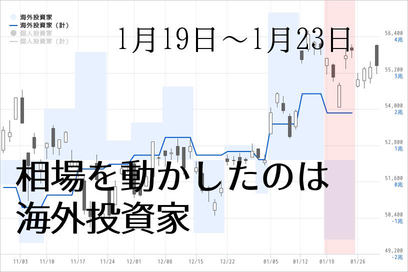 海外投資家が売り越しする中、1月第3週に、買い越しに回り海外投資家の売り越し分を吸収した部門は、「個人投資家部門」で約4,947億円の買い越しとなった。
