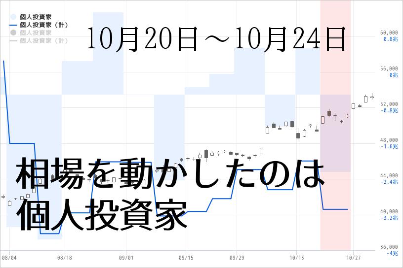 海外投資家が買い越しする中、10月第4週に、売り越しに回り海外投資家の買い越し分を吸収した部門は、「個人投資家部門」で約5,361億円の売り越しとなった。