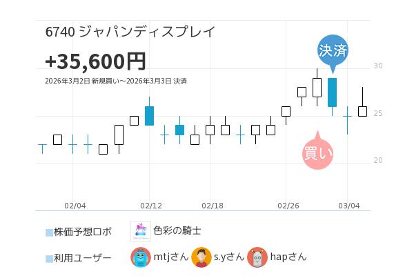 ジャパンディスプレイ【6740】上昇トレンドを捉え短期間で+7.4%の利益!