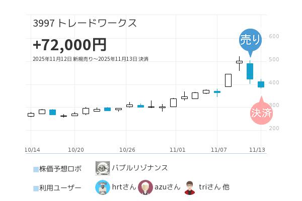 | 11/7 | +75,000円 | 6622 | ダイヘン | 売 | 100株 |