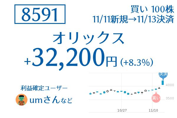 | 11/5 | +50,000円 | 6622 | ダイヘン | 売 | 100株 |
