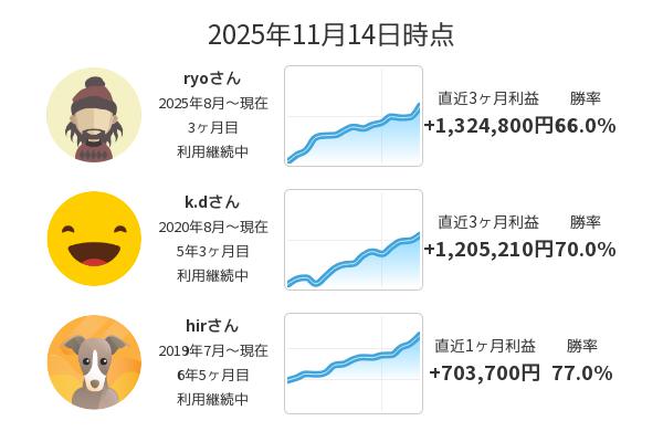 ※利益:配信シグナルを元にに算出。手数料・税金除く
