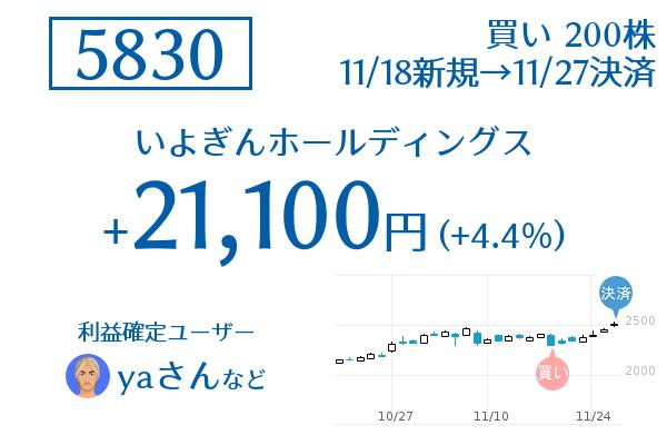| 11/17 | +19,000円 | 3415 | TOKYO B… | 売 | 1000株 |